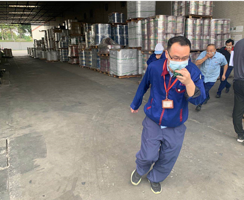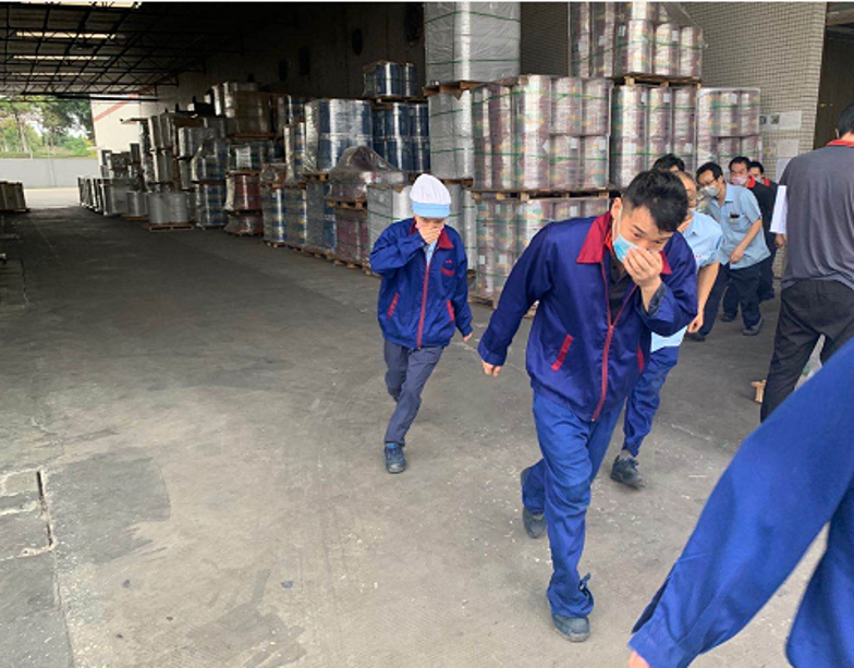 三、2020年2月28日佛山市晟美包装制品有限公司对员工进行车间应急事故逃生演练。