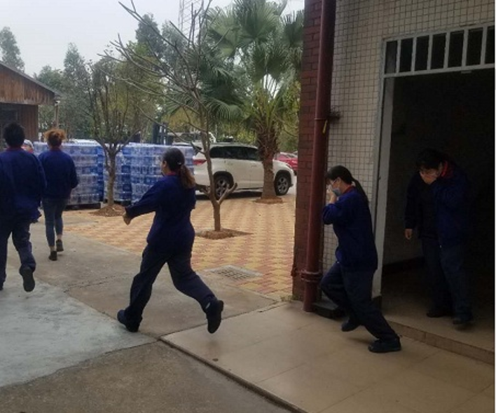 四、2020年2月28日佛山市晟美包装制品有限公司对员工进行宿舍应急事故逃生演练。